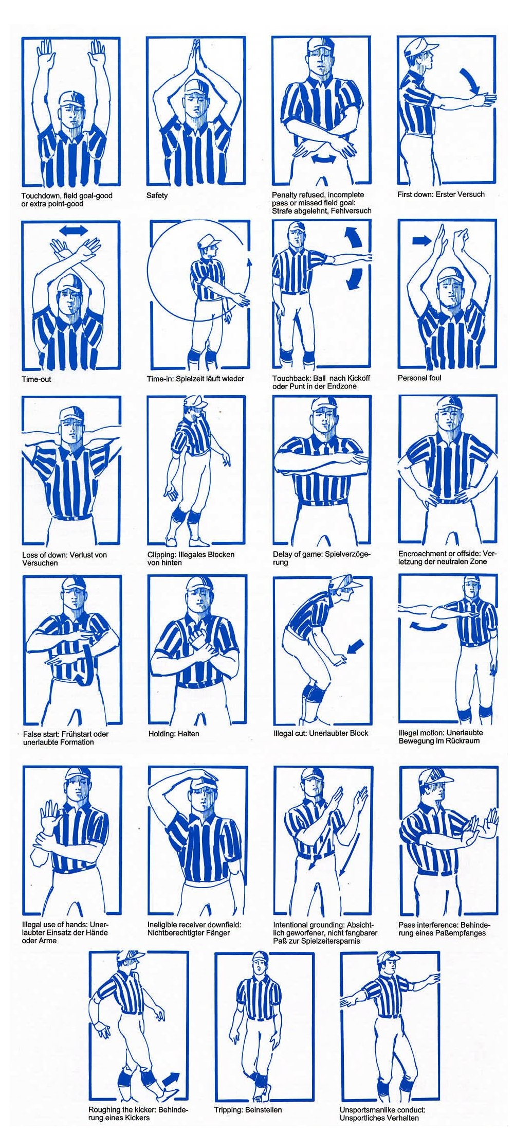 Die Schiedsrichter zeigen Fouls durch eine gelbe Flagge und durch Handzeichen an.